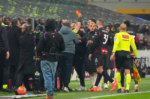 その裏で、タッチラインは完全にヒートアップ。ミランのマッシミリアーノ・アッレグリ監督は猛抗議で退場処分に。後日、トリノ戦の1試合出場停止と1万ユーロの罰金が科された。
