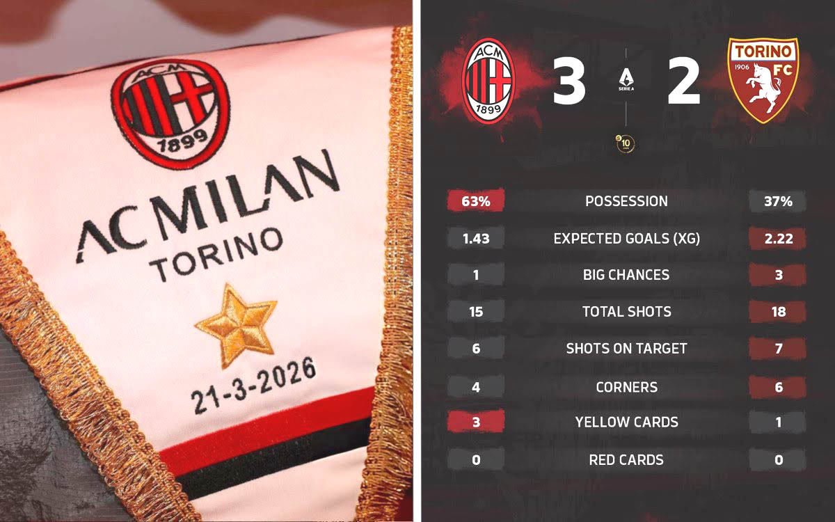 もっとも、内容面ではロベルト・ダヴェルサが率いるトリノにも分があった。期待得点(xG)や決定機の数ではミランを上回り、シュート数や枠内シュート、コーナーキック数でも優勢だった。それでも最終的な結果を分けたのは、ゴールを奪い切る力だった。